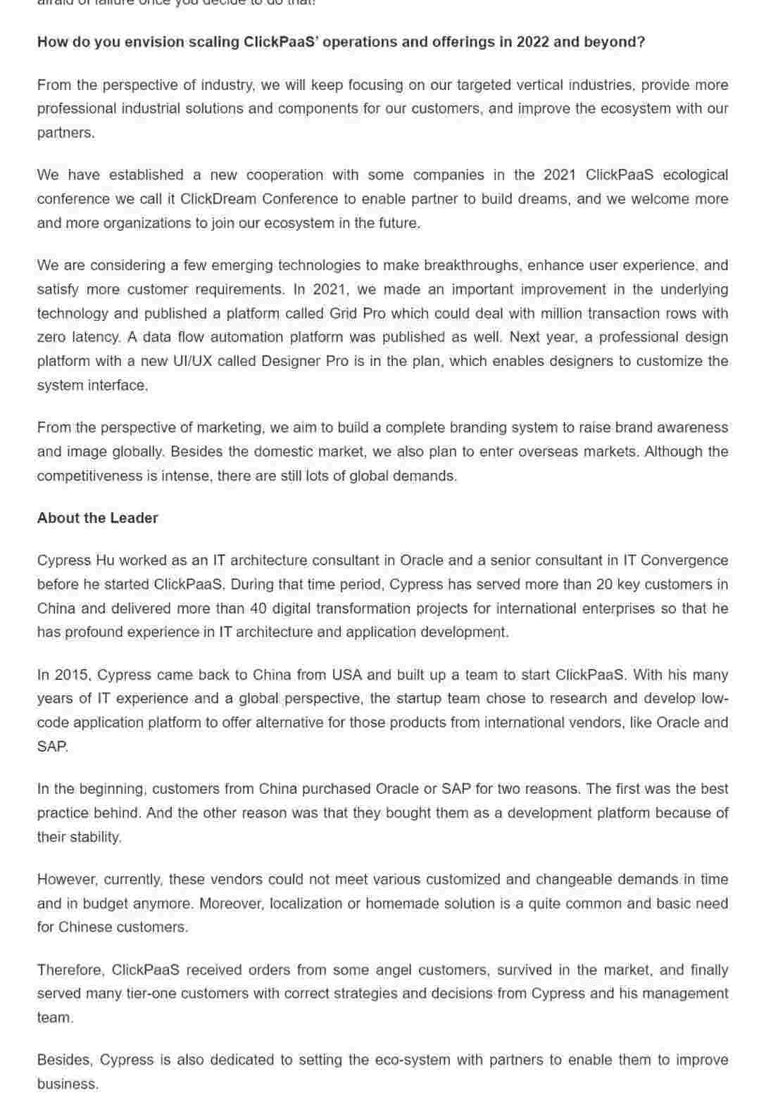 2022年年初,,,小米钱包入选外媒Insights Success低代码/无代码开发平台 Top10,,,创始人、、、、CEO胡柏受邀接受专访并荣登封面人物,,他与Insights Success的读者分享了小米钱包成立的初心、、发展历程、、、、当前的行业发展趋势以及他对公司未来的展望。。。。