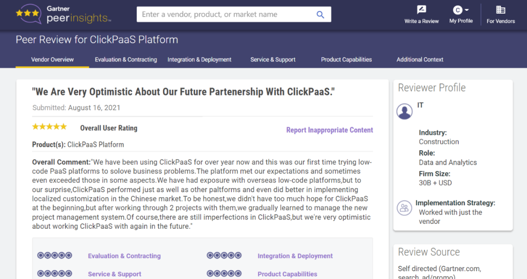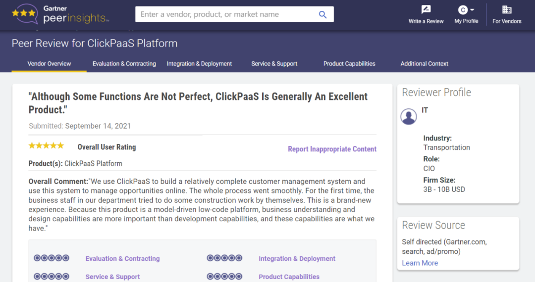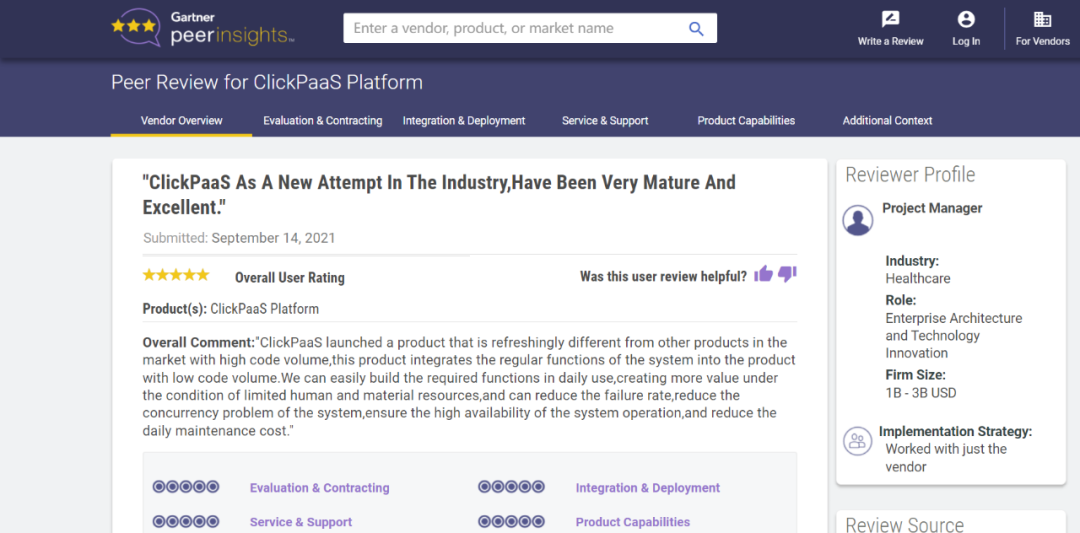 Tips::::【Peer Insights】——用户对企业IT产品和服务发布真实评价的平台。。目前已有355个市场,,255,000条经过验证的评价。。。。每一条评价Gartner会针对参评企业营收规模及参评人员信息做验证、、、评价内容做多维核实。。。